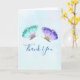 Cartões de agradecimentos do casamento com um design romântico delicado. 2 borboletas elegantes da aguarela, roxo pastel e verde pintados. Uma luz - fundo azul da aguarela com sugestões da luz - rosa.