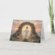 An awesome serene and inspiring AI generated image of the risen Jesus stepping forward from a circular stone tomb at dawn showing that the stone entrance was moved. Warm golden light radiates behind Him, forming a glowing halo effect through the archway. His hands are open in a gesture of peace and welcome, while white doves soar in the soft pastel sky. Colorful spring flowers bloom at His feet, and gentle rays of sunlight symbolize resurrection, hope, and new beginnings—perfect for a personalized Easter greeting card.