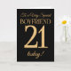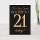 Uma placa de aniversário de 21 anos de microfone para um "Namorado muito especial", com um número 21 composto por números de efeito ouro e a palavra "Namorado", em efeito ouro, sobre fundo preto. A mensagem dentro, que podem mudar se quiserem, é "Parabéns"