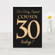 Cartão Efeito Dourado de 30 no Negro para Primo Aniversár