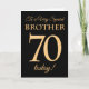 Um Cartão de Aniversário de 70 de Chic para um "Irmão Muito Especial", com um número 70 composto por números de efeito ouro e a palavra "Irmão", em efeito ouro, sobre fundo preto. A mensagem dentro, que podem mudar se quiserem, é "Parabéns"