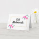 Cartão de felicitações cor-de-rosa floral do Ramadão desejando Eid Mubarak.
