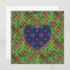 Um padrão vibrante e intrincado preenche o espaço, apresentando um coração azul central cercado por designs florais simétricos em tons verdes, cor-de-rosa e castanhos. O fundo é uma cinza uniforme, colocando ênfase na tapeçaria colorida.
