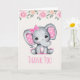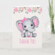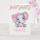 Cartão Elefante-Bebê rosa e borda-Rosa Obrigado