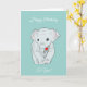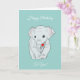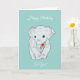 Elefante de aniversário no cartão de chá. Todos os textos podem ser personalizados.