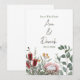 Anuncie seu grande dia com elegância natural usando este cartão de Save the Date botânico, apresentando flores nativas suaves e sotaques de eucalipto frondoso. Com um layout limpo e minimalista e texto personalizável, este design é perfeito para casamentos modernos com tema rústico ou de jardim.