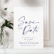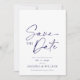 Anuncie seu dia especial com estilo com este Cartão Elegante de Floral Azul para Salvar a Data. Com uma sofisticada escrita naval num fundo branco crocante, este cartão exala charme atemporal. O verso apresenta um delicado padrão floral azul, adicionando um toque romântico. Perfeito para casamentos, noivados e celebrações formais, este cartão de Salvar a Data garante que seus convidados marquem seus calendários para o seu evento inesquecível.