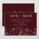 Anuncie sua próxima celebração com um estilo atemporal usando este Cartão de Save the Date Floral Burgundy Elegante. Com florais em burgundy profundo e tipografia moderna refinada, este design define o tom perfeito para um casamento romântico. Adicione nomes e detalhes do evento para personalizar completamente seu cartão. Impresso em papel cartão premium, combina perfeitamente com o conjunto de convites correspondente.