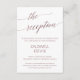 Este elegante cartão de recepção de caligrafia rosa dourada é perfeito para um casamento outono. A design cor-de-rosa-pincelada apresenta uma carta minimalista decorada com tipografia da folha de ouro rosa-falso romântica e caprichosa. Personalize este cartão de recinto detalhado com as informações de recepção e inclua também o endereço do seu site de casamento! Nota: Este design não apresenta folha de ouro rosa real. É um gráfico de alta qualidade feito para se parecer com folha de ouro rosa.