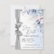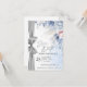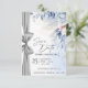 Anuncie seu dia especial com elegância atemporal usando este cartão de Save the Date em aquarela de luxo, lindamente projetado com flores em tons de azul suave e rosa e um sutil detalhe de fita prateada.