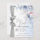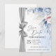 Anuncie seu dia especial com elegância atemporal usando este cartão de Save the Date de luxo em aquarela, lindamente projetado com flores em tons de azul suave e rosa e um sutil detalhe de fita prateada.