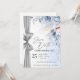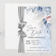 Anuncie seu dia especial com elegância atemporal usando este cartão de Save the Date em aquarela de luxo, lindamente projetado com flores em tons de azul suave e rosa e um sutil detalhe de fita prateada.