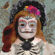 Tradição e beleza se unem neste cartão ligeiramente mais formal (também disponível em versão em português). A tradicional maquiagem facial 'La Catrina' é modelada digitalmente no rosto encantador de uma boneca vitoriana antiga da minha coleção pessoal. Uma estampa de damasco dourado em seda fornece um fundo elegante. Convites combinando estão disponíveis para suas reuniões familiares para homenagear as almas dos falecidos. Sele seus envelopes com adesivos La Catrina combinando, também disponíveis em Cheeky_Poppets.