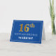 A frente deste design de cartão de felicitações temático de aniversário sofisticado e luxuoso apresenta um grande número ordinal "16º" com uma aparência inspirada em imitação/ouro falso, a mensagem "FELIZ ANIVERSÁRIO DE 16 ANOS", um nome de destinatário editável e um padrão de borda composto por linhas finas em um fundo azul. O interior apresenta uma mensagem de aniversário personalizável ou pode ser limpo e deixado em branco se uma mensagem for escrita à mão. Um cartão de aniversário editável como este pode ser usado para reconhecer o aniversário de dezesseis anos de alguém. [~Z0000482]