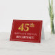 A frente deste respeitável e luxuoso design de cartão de saudação de aniversário com tema de saudação apresenta um grande número ordinal "45º", com um olhar inspirado em imitação/falsa ouro, a mensagem "FELIZ 45º ANIVERSÁRIO", um nome de destinatário editável e um padrão de borda que consiste em linhas finas sobre um fundo vermelho. O dentro apresenta uma mensagem de saudação de aniversário personalizada, ou talvez possa ser apagado e deixado o vazio se uma mensagem for escrita manualmente. Um cartão de saudação de aniversário editável como este poderia ser enviado para celebrar o quarenta e cinco anos de alguém. [~Z0000467]