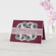 Dahlias decorativas contra um fundo de cor vinho-vermelho. As flores rodeiam o texto de parabéns que usa uma fonte tipográfica de roteiro atraente contra uma faixa translúcida branca. As flores cobrem a frente deste cartão que pode ser usado como um cartão de agradecimento, um cartão de aniversário ou qualquer outro cartão de sua escolha. Personalize-o com seu texto e / ou imagens para torná-lo único!