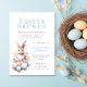 Imprima os seus convidados com estes convites elegantes de PÁSCOA BRUNCH. Flores de buquê de aquarelas / design floral com coelho de páscoa pintado e ovos. Coloração pastel em rosa, roxo, azul, amarelo. Delicado, mas elegante para aquele brunch perfeito de férias