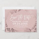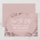 Este elegante cartão de "save the date" de casamento em rosa e dourado rose é perfeito para um casamento sofisticado. O design apresenta uma deslumbrante moldura folheada a folha de ouro rosa falso em um fundo rosa claro e é combinado com uma fonte cursiva deslumbrante. Personalize o anúncio com os nomes do casal, data do casamento, local e site do casamento.
