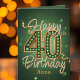 Cartão Elegante, verde e aniversário de 40 anos Dourado