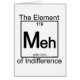 A ciência isolou um produto químico novo na mesa periódica - o elemento da indiferença, abreviado como MEH. Esta substância comum aparece como uma encolho de ombros verbal dos ombros quando você apenas não se importa. Química para as massas - um presente perfeito do calão para… o que quer que.
