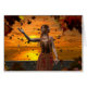 Cartão Elf caindo sai contra um sunset de outono