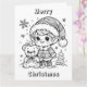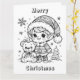 Super grande cartão de Natal com um elfo adorável segurando uma simples página de colorir preto e branco de ursinho peludo. Cartão de Natal Colorido-me. Você pode editar o texto do cartão se desejar na área de personalização.