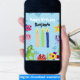 Esta carta de boas-vindas apresenta um estilo gráfico brilhante e lúdico, perfeito para celebrar aniversários sob as ondas. As personagens são feitas de forma encantadora e cartoonesa, com grandes olhos e expressões amigáveis. As ilustrações da vida marinha incluem um peixe-estrela sorridente, um polvo, um caranguejo, uma medusa, dois peixes com listras e padrões coloridos e um cavalo marinho. Estas criaturas adoráveis adicionam um toque de alegria ao design. Três velas em diferentes alturas e cores vibrantes adornam o centro, cada uma embelezada com padrões únicos. O texto na frente e dentro da placa é totalmente personalizável.