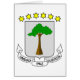 Casaco da Guiné Equatorial. A casaco nacional de armas da Guiné Equatorial foi adotada em 21 de agosto de 1979. Esta casaco de braços mostra uma blindagem de cinza, que contém uma árvore. Esta árvore é uma seda de algodão, ou assim chamada "árvore de Deus". Foi aqui que o primeiro tratado foi assinado entre a Espanha e o governante local. Sobre o escudo, há seis estrelas de seis pontas. Representam o continente e as cinco principais ilhas.