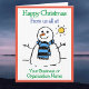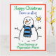 Feliz Natal para um Arquiteto. Cartoon engraçado de um boneco de neve no sol de inverno. Adicionar uma mensagem do remetente.
