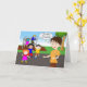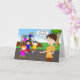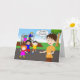 Cartão de saudação do professor reformado engraçado. Imagem de uma professora aposentada no parquinho com crianças infelizes indo em direção a ela. Copyright © Shoaff Ballanger Studios.