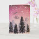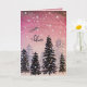 Envie-lhes desejos mágicos nesta temporada de férias com este cartão "Acredite" do Encorajar-me bonito. A frente apresenta um céu noturno cor-de-rosa com neve caindo e árvores cada vez verdes salpicadas com diferentes cores. A dentro apresenta o sentimento "Que seu coração esteja cheio de alegria e riso nesta temporada de festas." Minha cor d'água original.