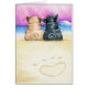 Da tinta original de Andie e da pintura colorida a lápis: "Shore, Eles são Pugs do Amor". Mostra os pretos e as crias observando o pôr do sol na praia a alguns passos de um coração de pata desenhado na areia. (c)2015 Andie.