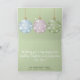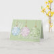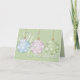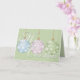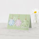 Este cartão de Natal apresenta três Enfeites de natal coloridos não tradicionais em verde-pastel, rosa e azul com estrelas brancas sobre fundo verde no cobrir e transportadas através do dentro. Personalize as informações de dentro nos campos modelo.