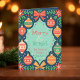 Ilumine seus cumprimentos de Natal com este cartão de Natal Merry & Bright, uma celebração vibrante e folclórica do estilo festivo retrô. O cartão é um espetáculo visual de fogos de artifício, com ornamentos coloridos e detalhados pendurados como joias cintilantes em torno de um painel central azul-claro. A letração vermelha e verde ousada se destaca no fundo, pronta para o nome da sua família e o ano personalizados. Dois laços vermelhos e dourados encantadores enquadram o design, unindo a composição. O fundo azul escuro e rico é pontilhado com estrelas cintilantes, criando uma atmosfera mágica de noite de inverno.