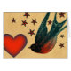Tatuagem retrorística de andorinhas e estrelas com coração vermelho.