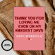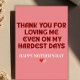 Celebre sua mãe com um cartão engraçado e sincero do Dia das Mães que ela nunca esquecerá. Este cartão imprimível é perfeito para expressar gratidão à sua mãe por amá-lo(a) mesmo nos dias mais difíceis.