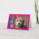 Labradoodle adorável e precioso toda pronto para slobber você com beijos molhados do aniversário.