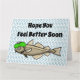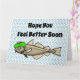 Aqui está um bobo para dar a alguém que está doente ou se recuperando. Ele apresenta um grande bacalhau na frente com uma garrafa de água quente na cabeça. Este é um cartão de excelente para pessoas que gostam de trocadilhos, ou que também gostam de pescar. Ou de alguém que gosta de pescar para dar a um amigo doente. Desenhado por Sheila Cicchi, Brownielocks.com, Todos os Direitos Reservados.