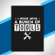 Este engraçado presente de "Trabalho com um Monte de Ferramentas" feito por um trabalhador de madeira faz um hilário presente sarcástico para um carpinteiro, trabalhador da construção, empreiteiro, mecânico de carros ou qualquer indústria de colarinho azul que usa chaves de fenda, chaves de inglesa e outras ferramentas no trabalho. presente de novidade divertida para pai, avô ou funcionários, colegas de trabalho ou chefe com senso de humor sarcástico. Apresenta o estilo industrial design com estrelas e ferramentas de mão, gráficos de clip art.