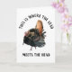 Um presente engraçado para o ávido caçador de peru selvagem. Este cartão de saudação apresenta um grande peru Tom e a citação "Aqui é onde o Chumbo Encontra a Cabeça". Um presente de excelente para a pessoa que ama perseguir gobblers no mato. Este cartão é excelente para aniversários, festas de aposentadoria, notas de agradecimento e muito mais. Adicione uma mensagem personalizada ao dentro da placa ou exclua o texto e escreva uma mensagem manualmente.