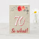 Engraçado Rustic 70 Então Que Cartão De Aniversário De 70 Floral. Cartão de aniversário floral russo de 70 com belos rosas de aquarela e galhos num fundo roxo bege. A citação engraçada e inspiradora 70 Então o que é excelente para uma pessoa que celebra 70 anos e tem senso de humor. Excelente presente de aniversário.