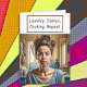 Uma dona de casa engraçada com cabelo louco, pão bagunçado, casa bagunçada, roupa suja dizendo que conseguir um emprego seria uma pausa do trabalho doméstico.