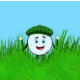 Esta engraçada bola de golfe de desenho animado vestindo um tradicional boné de golfe do newsboy está se espiando pela ruína querendo dizer ao seu especial que você sente falta deles!