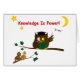 A sábia coruja ensinando a fórmula de Einstein, e os estudantes ouvindo a palestra. "Conhecimento é poder" é uma citação de um filósofo inglês, Francis Bacon. Ofertas únicas para o retorno à escola, graduações, eventos escolares e outras ocasiões especiais!