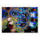Máscara fractal colorida, elegante e artística com miçangas vibrantes em azul, roxo, preto, amarelo, vermelho.rosa, fuchsia e pedras brilhantes 3D.Arte digital exclusiva, renderização fractal e design por Búlgaro Lumini.