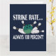 Cartão de Saudação da Equipe de Strike do Jogo de Boliche projetado por Nisha Prabhu. Apresenta um pin de boliche e uma bola de boliche com a tipografia "Taxa de Strike... Sempre 100 Por Cento!". Marque um strike com o nosso Cartão de Saudação da Equipe de Strike do Jogo de Boliche! Perfeito para enviar bons votos aos seus companheiros de boliche ou expressar seu amor pelo esporte, este cartão é uma maneira certeira de alegrar o dia de alguém. Apresentando um design divertido e atraente que captura a emoção da pista de boliche, este cartão de saudação é uma ótima escolha para qualquer ocasião. Seja para celebrar um aniversário, parabenizar um amigo ou simplesmente dizer olá, este cartão é a maneira perfeita de espalhar um pouco de alegria temática de boliche. Mostre sua paixão pelo jogo e cause