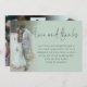 O Elegante Script 6 Fotos Obrigados de Amor de Casamento Obrigado Sage Green Love e obrigados está em um estilo escrito à mão. Personalize facilmente o resto do texto para seus próprios detalhes e substitua as seis fotos de exemplo na frente e atrás por suas próprias como guardas para seus convidados.