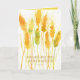 Um cartão de saudação de encorajamento religioso com um verso Bíblia do livro de John 6:35, decorado com trigo ouro amadurecido e acentuado com manchas de salmoura ilustradas com aquarela. No dentro está uma cor amarela coordenadora do ouro e outro pedúnculo de trigo com texto que você pode editar para ajustado de suas necessidades.