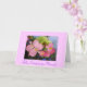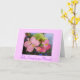 Tarjeta postal em espanol con foto de flores ( begonias) rosadas para los cumples de la mama.Personalize o nosso mensaje! Cartão comemorativo em português para o aniversário da mãe com fotografia de flores cor-de-rosa e azuis em fundo rosa. "Feliz Aniversário Mãe!"; Personalize sua mensagem! Fotografia de Maria Santos (Lusinhas do Sul)