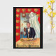 Cartão do Dia das Bruxas do vintage que caracteriza um homem novo startled que tenta ver seu amor verdadeiro em um espelho. Eu dunno, ela olho-me o tipo de pálido.